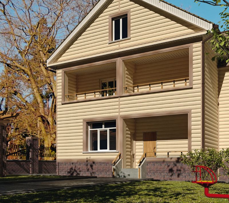 Дом с сайдингом «Блок-хаус» похож на сруб – традиционный и уютный. На вид его сложно отличить от натуральной древесины, зато он практичнее, не боится влаги и морозов.