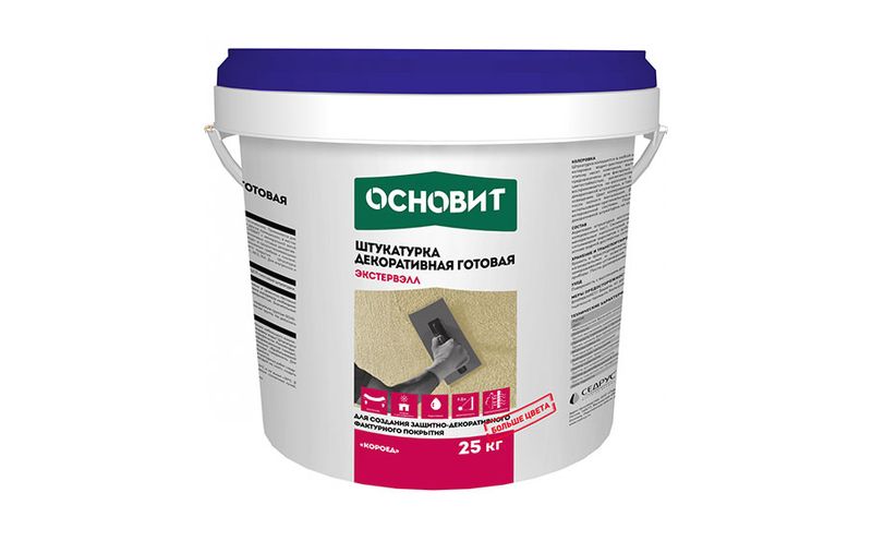 Готовая к применению штукатурка декоративная Основит Экстервэлл фактура “короед” предназначена для создания тонкослойного декоративно-защитного покрытия при отделке различных поверхностей, в т.ч. при устройстве системы фасадной теплоизоляции Основит.
